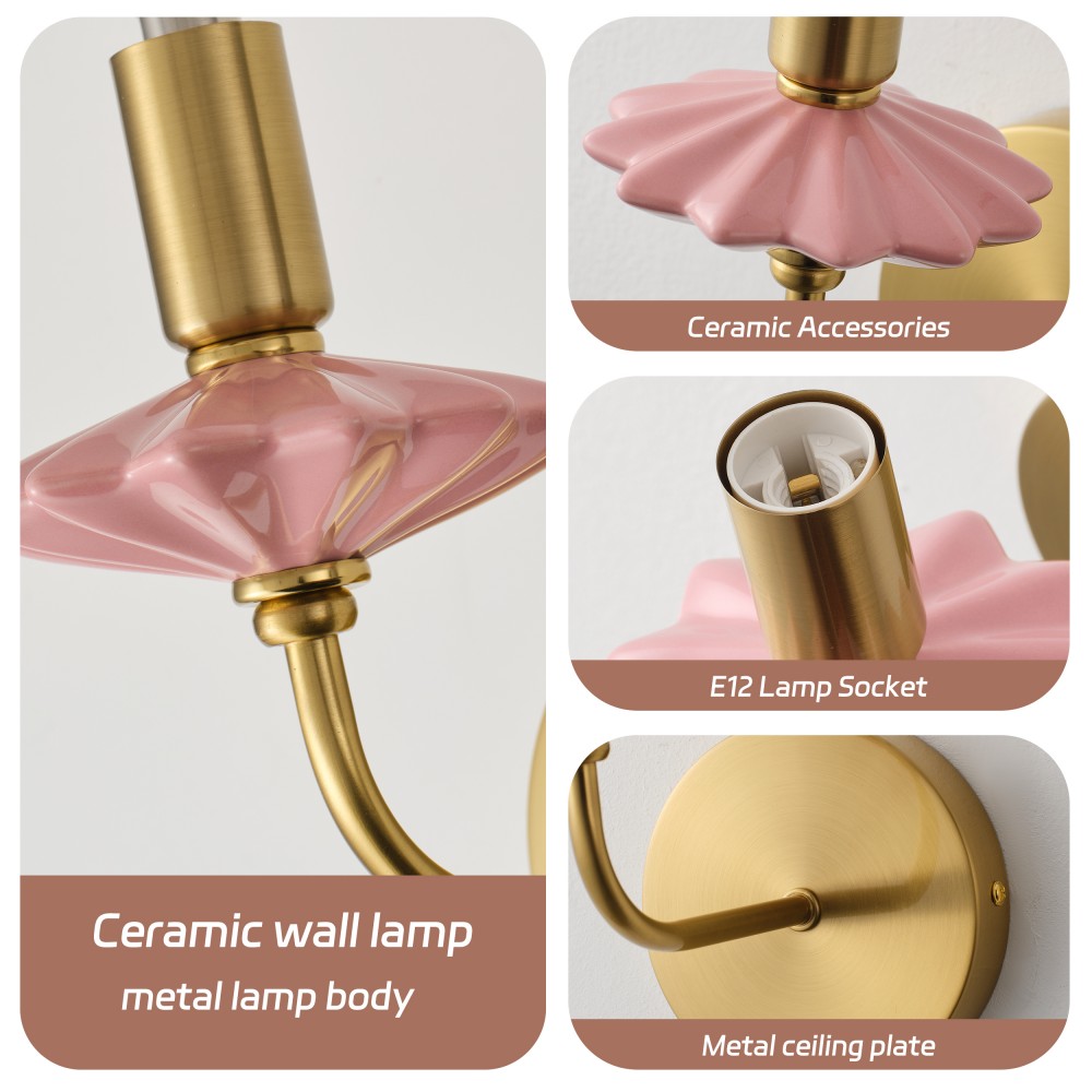 नरम गुलाबी सिरेमिक और बहु-परत सोना-प्लेटेड हार्डवेयर से बना, यह बाथरूम दीवार स्कोनस क्लासिक मोमबत्ती के आकार को आधुनिक प्रकाश लक्जरी शैली के साथ जोड़ती है, जो सिरेमिक और धातु सामग्री को एकीकृत करने वाली मजबूत रोशनी की उत्कृष्ट कृति है। सिरेमिक भागों को उच्च तापमान वाले ग्लेज़िंग द्वारा संसाधित किया जाता है, जिसमें एक सहज स्पर्श और फीका प्रतिरोध होता है, जबकि सोना चढ़ाया हुआ हार्डवेयर में उत्कृष्ट ऑक्सीकरण प्रतिरोध होता है, जो तटीय क्षेत्रों में आर्द्र बाथरूम वातावरण में भी दीर्घकालिक उपयोग के लिए उपयुक्त होता है। E12 सॉकेट से सुसज्जित, यह पारंपरिक और एलईडी बल्बों के साथ संगत है, जो प्रति लैंप 40W की अधिकतम शक्ति का समर्थन करता है। अलग-अलग वातावरण बनाने के लिए गर्म और ठंडी सफेद रोशनी को स्वतंत्र रूप से स्विच किया जा सकता है, L200xW110xH210 MM के आयामों के साथ, इसका कॉम्पैक्ट अनुपात विभिन्न इनडोर दीवारों में फिट बैठता है।
