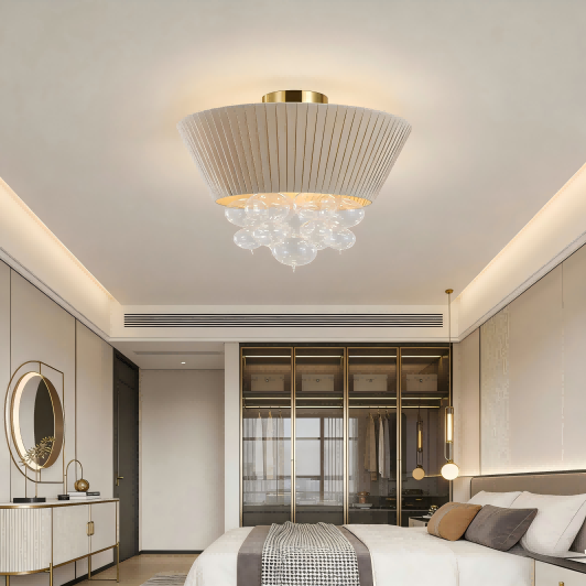 यूरोपीय और अमेरिकी बाजारों में अपनी दीर्घकालिक सेवा के दौरान, स्ट्रॉन्ग लाइटिंग ने हमेशा अंतिम उपयोगकर्ताओं की सौंदर्य संबंधी आवश्यकताओं और उपयोग परिदृश्यों पर बारीकी से ध्यान दिया है। इस सीलिंग लैंप का फैब्रिक लैंपशेड हाथ से दबाई गई बनावट तकनीक से बनाया गया है, जो एक प्राकृतिक और त्रि-आयामी प्लीटेड बनावट बनाता है। इससे निकलने वाला प्रकाश नरम और समान रूप से वितरित होता है, जिससे एक गर्म और आरामदायक प्रकाश वातावरण बनता है। नीचे लटके हुए कांच के बुलबुले हाथ से उड़ाए गए हैं, प्रत्येक का आकार थोड़ा अलग है। जलाए जाने पर, वे निलंबित प्रकाश मोतियों की तरह दिखते हैं, जो एक गतिशील और आकर्षक प्रकाश और छाया प्रभाव प्रस्तुत करते हैं। चाहे इसका उपयोग नॉर्डिक न्यूनतम आवासीय स्थान में किया जाए या हल्की विलासिता शैली वाले व्यावसायिक स्थान में, यह स्थान की गुणवत्ता को महत्वपूर्ण रूप से बढ़ा सकता है।